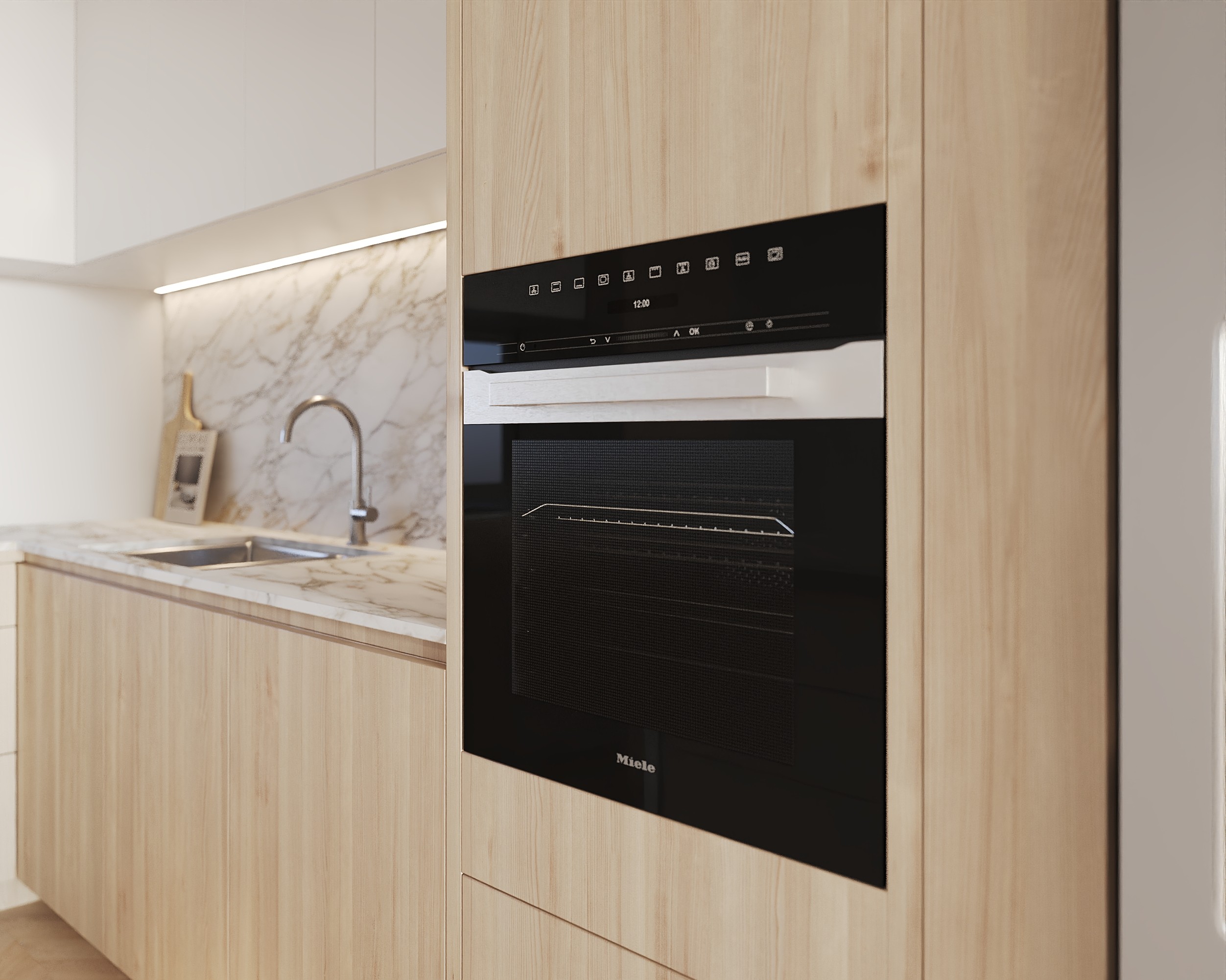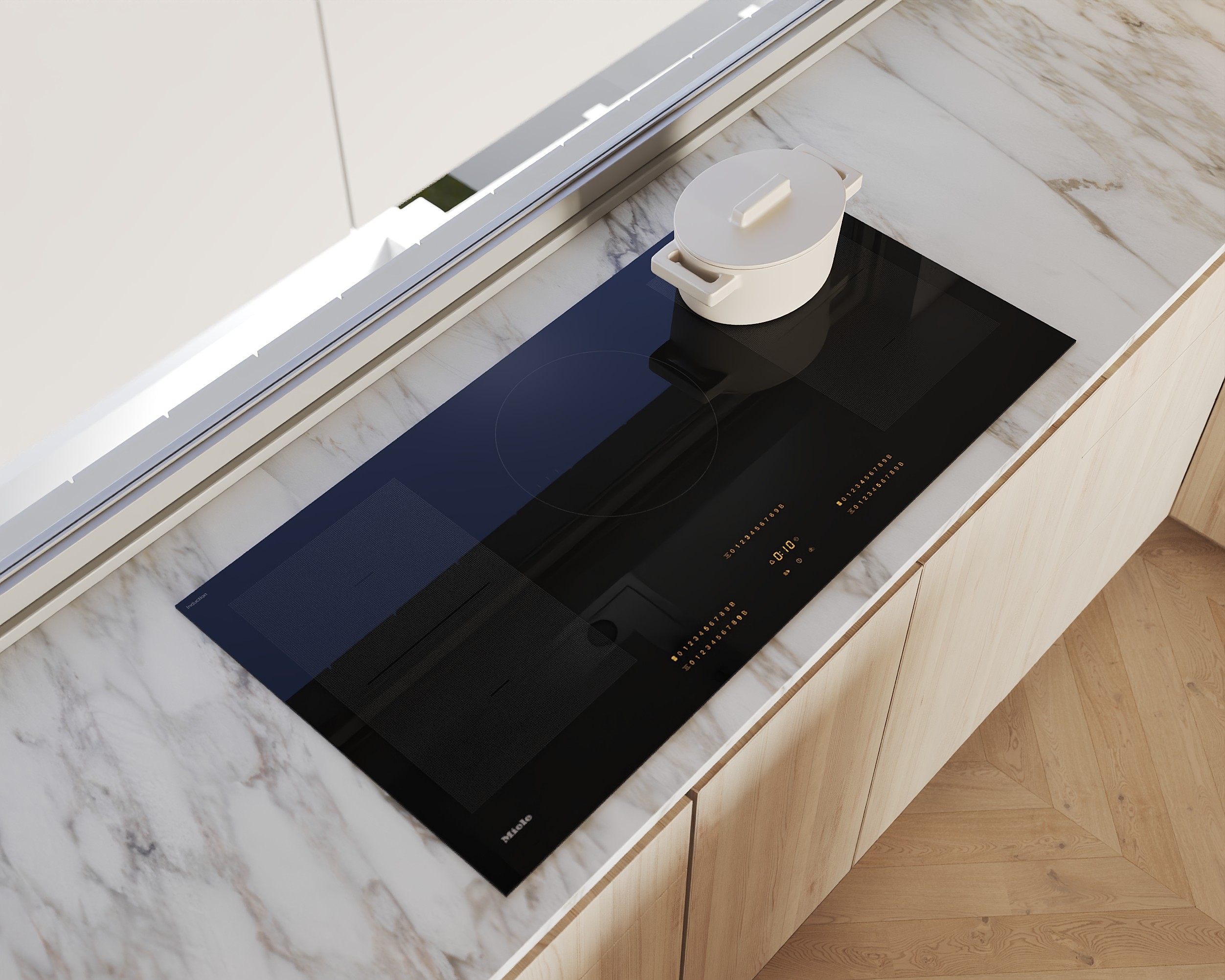 Gourmet kitchen with fully integrated Miele appliances featuring a 90cm induction cooktop